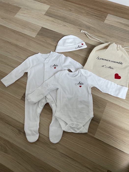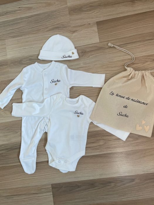 Birth outfit set which can be composed of:
